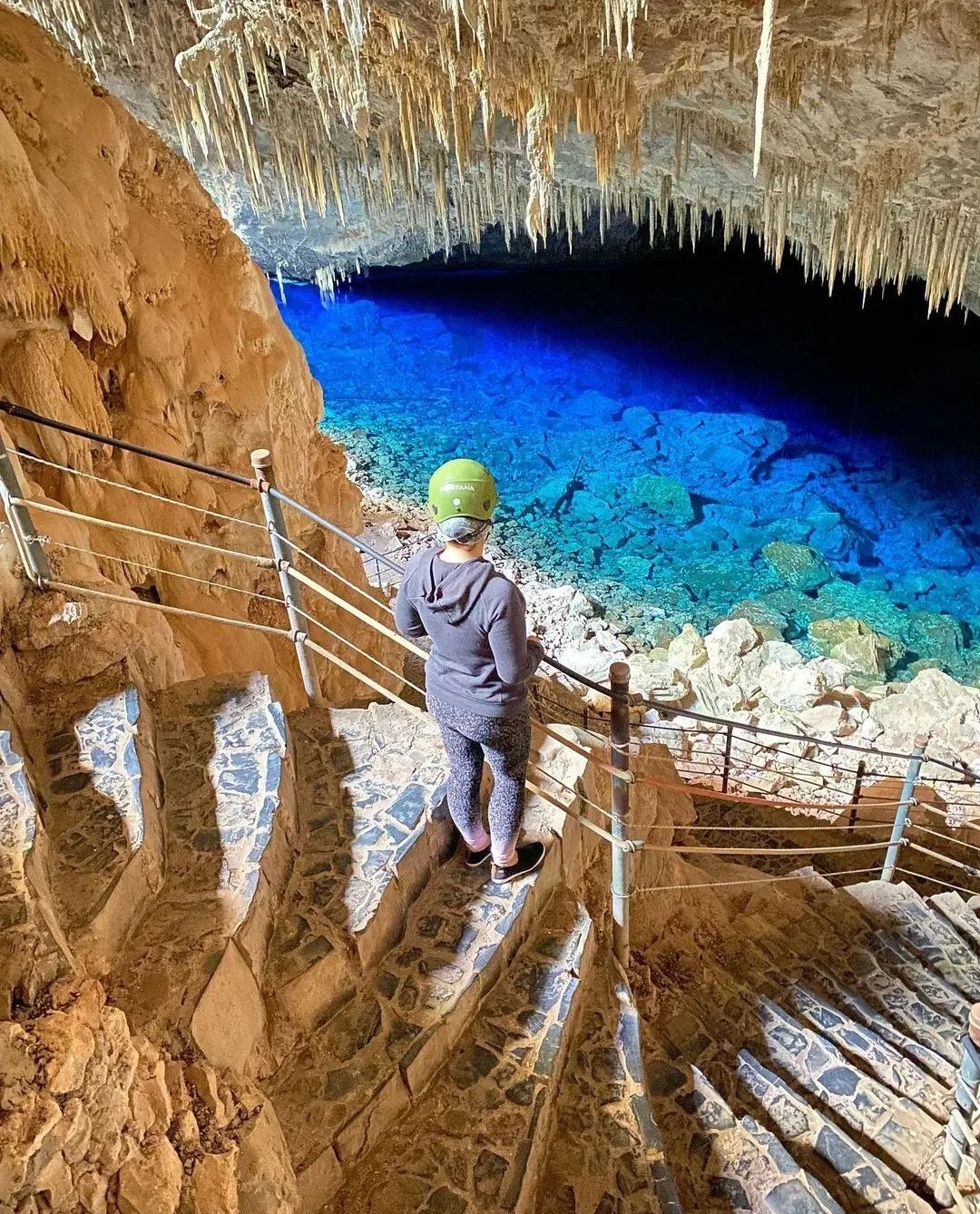 A Gruta do Lago Azul é uma caverna calcária que se destaca por sua incrível beleza e por abrigar uma das piscinas subterrâneas sem dúvida mais cristalinas e profundas do mundo. O nome “Lago Azul” é uma descrição perfeita das águas da caverna, que têm uma tonalidade azul-turquesa deslumbrante. A origem da coloração azulada ainda é objeto de estudo, mas acredita-se que seja resultado da interação da luz solar com minerais presentes na água. O passeio começa com uma trilha de 200 metros até a entrada da caverna, lapidada na rocha.